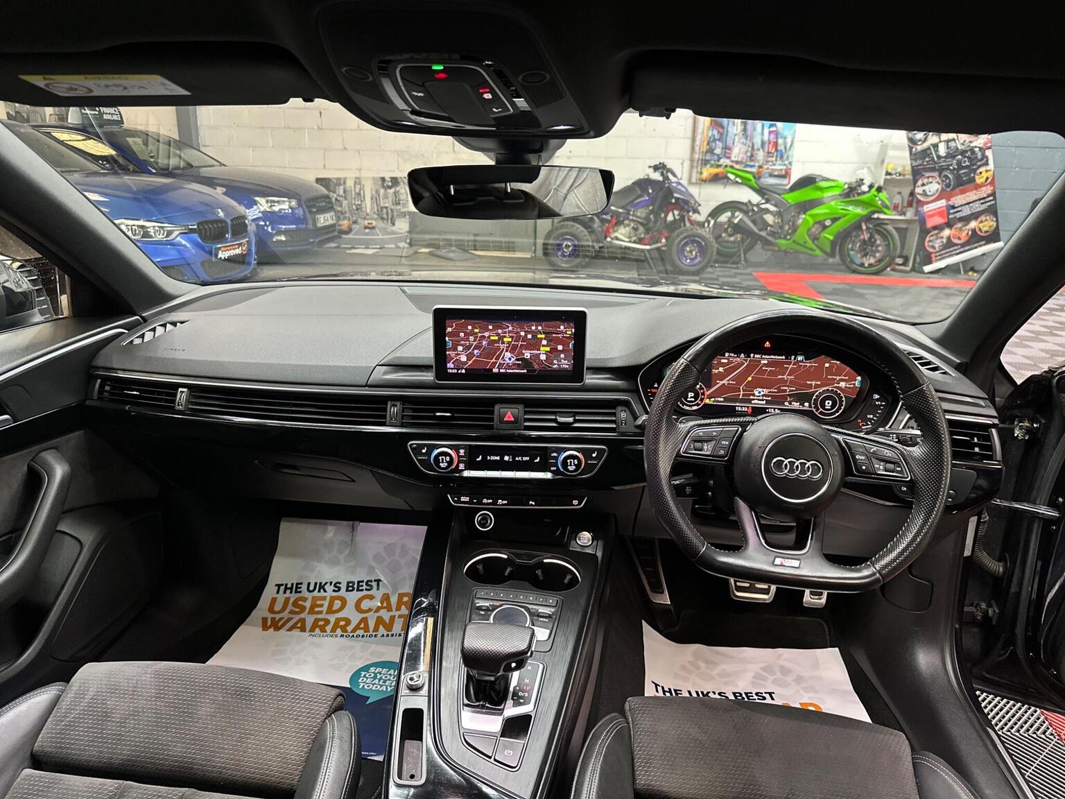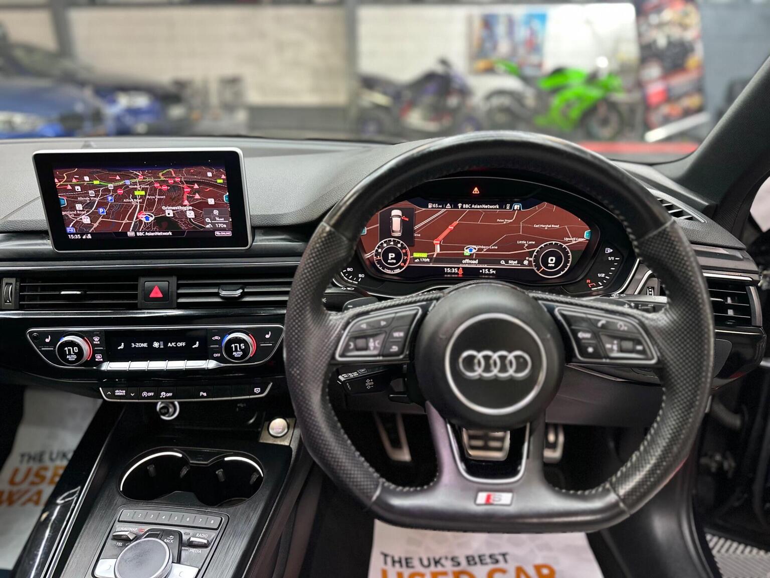 19in Alloy Wheels - 5-Arm Rotor Matt Titanium Look - Diamond Cut, 4-Way Electric Lumbar Support, 6-Airbag System, Anti Theft Locking Wheel Bolts, Anti-Theft Alarm, Audi Connect - 3 Month Trial, Audi Connect Safety and Service - e-call, Audi Drive Select, Audi Smartphone Interface, Audi Sound System, Auto-Dimming Rear-View Mirror, Black Styling Package, Bluetooth Interface, CD Drive, Chrome-Plated Trims for Exhaust System, Cloth Headlining in Black, Cruise Control System with Freewheeling Capability and Speed Limiter, DAB Digital Radio, Deluxe 3-Zone Electronic Climate Control, Door Handles - Body Coloured, Door Mirrors - Electrically Adjustable and Heated with Built-in LED Indicators, Driver Information System - 7in Colour Display, ESC - Electronic Stabilisation Control inc ABS - ASR and EDL, Electric Load Area Cover, Electric Windows - Front and Rear, Electromechanical Power Steering, First Aid Kit and Warning Triangle, Flat Bottomed 3-Spoke Leather High Multi-Function Steering Wheel, Front Centre Armrest, Gear Lever Knob in Black Perforated Leather, Heated Front Seats, High Gloss Package, ISOFIX Child Seat Mounting and Top Tether, Illuminated Door Sill Trims with S Logo, Inlays - Piano Finish - Black, Keyless Go, LED Headlights with LED Rear Lights and Dynamic Rear Indicators, LED Interior Light Package, Light and Rain Sensor, MMI Navigation - SD Card Based, Manual Height Adjustment for Front Seats, Multi Collision Brake Assist, Parking System Plus, Pedals and Footrest - Stainless Steel, Pop-Up Bonnet for Pedestrian Protection, Power Operated Tailgate, Pre-Sense City, Privacy Glass and Front Acoustic Glazing, Rear Diffuser in Twilight Grey Matt, Rear Grille - Black Grained, Remote Central Locking, S Line Badges on Front Wings, S line Front and Rear Bumpers and Side Skirts, Seat Belt Monitoring, Space Saver Spare Wheel, Split-Folding Rear Seat Bench in 3 Parts - 40-20-40 with Rear Centre Armrest, Sport Suspension, Sun Visors - with Vanity Mirror, Tool Kit and Car Jack, Towbar Preparation, Two USB Charging Ports, Tyre Pressure Warning Light, Voice Control, Windscreen with Acoustic Glazing